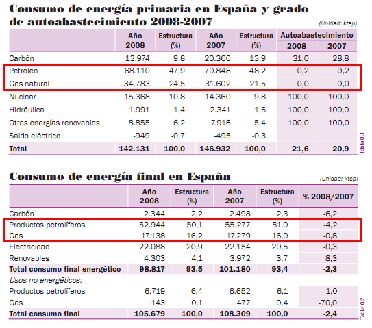 Incluimos también tablas informativas sobre las importaciones de hidrocarburos y origen.