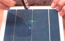 Trampas de luz: La luz incidente se refleja en surcos en una banda de plata y es redirigido a lo largo de una tapa de vidrio. Esta luz, que generalmente se pierde, entonces puede ser absorbido por la célula solar. La banda acanalada es una de las tres mejoras que podrían reducir significativamente el costo de producción de la energía solar fotovoltaica.