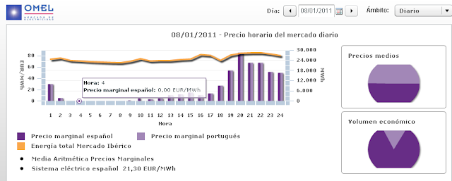 Durante el día 6/01/2.011 se dieron unas circunstancias similares aunque solo se produjo una casación a 0 € /MWh en una hora.