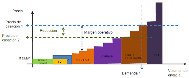 1. Reducción del precio del pool, al desplazar tecnologías más caras
