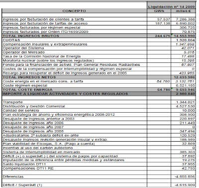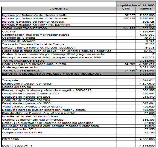 Donde se puede observar en esta liquidación provisional, el déficit acumulado financiado por las empresas que asciende a 4.615.909 miles de euros.