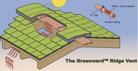 Cuando el sol cae sobre las tejas de color gris oscuro, el calor sube y fluye a través de la cresta de ventilación y alrededor de los tubos de plástico PEX, calentando una mezcla de glicol y agua, que se bombea a un intercambiador de calor; precalentando el agua antes de que llegue a la calentador de agua convencional. Este sólo se encenderá cuando la temperatura sea lo bastante baja y se necesite un aporte extra.