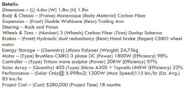 «En este tipo de pruebas los mismos estudiantes suelen ser los conductores de los vehículos de carreras solares,» señala Physorg , «en este caso, los pilotos profesionales de carreras Barton Mawer y Craig Davis, de las operaciones europeas de coches eléctricos Tesla, fueron los conductores de este invento.»