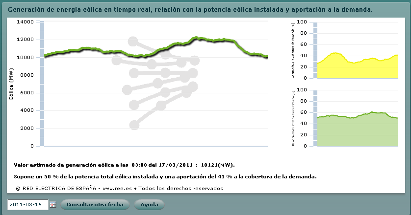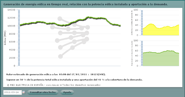 Lo irónico de las palabras del señor José Donoso está en que llegan el día en el que la eólica, después de un buen mes, está cubriendo por debajo del 10% de la demanda (5-7% en las últimas 8 horas con entorno al 10% de su potencia instalada).