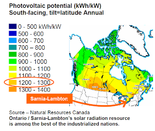 La favorable «feed-in tariff» (prima-incentivo a estas instalaciones) establecido por el gobierno de Ontario fue ciertamente un factor clave para ubicar este gran proyecto en este lugar. El área de Sarnia Lambton, también tiene un alto potencial de energía solar (PDF) comparativamente con la región, lo que lo hace propicio para una gran instalación fotovoltaica.