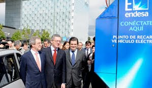 El presidente de Endesa, Borja Prado, junto con el alcalde de Madrid, Alberto Ruiz Gallardón, y el presidente de Telefónica, César Alierta, imauguraron el miércoles en Madrid la primera cabina telefónica que podrá ser utilizada, además de para hablar por teléfono, como punto de recarga de vehículos eléctricos.