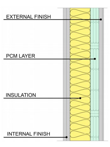 Los PCM son, en pocas palabras, materiales de elevada inercia térmica (para que nos entendamos, tardan mucho en calentarse y mucho en enfriarse) y en construcción donde realmente interesa tener inercia térmica es hacia el interior y siempre dentro de la envolvente contínua de aislamiento térmico.