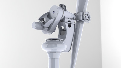 La turbina, con rotor de paso y velocidades variables, tiene tres sistemas mecánicos pasivos –rotor monopala oscilante, tren de potencia pendular y góndola autotimonante– que atenúan los picos de potencia y las sobrecargas estructurales. Pero el gran protagonista de este singular aerogenerador es, sin duda, el tren de potencia pendular.