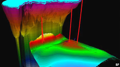 «Imagine una gran plataforma petrolera como una caja de cerillas», dice. A continuación, imagine la caja de cerillas en la parte superior de un edificio de dos plantas, con el piso superior lleno de agua y la planta baja llena de rocas, arena y, en algunos casos, sal. Lograr un depósito de petróleo con una tubería de perforación es como golpear una moneda en la base del edificio con una hebra de cabello humano. Las posibilidades de hacerlo mal son enormes. Una regla de oro de la industria sitúa el costo de la perforación de un aguas profundas «pozo seco», en alrededor de 100 millones de dólares, BP dice que puede ser tan alto como 200 millones de dólares.