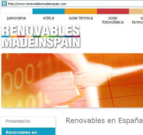 Impulsado por el Ministerio de Industria, a través del Instituto para la Diversificación y Ahorro de la Energía (IDAE), “Renovables Made in Spain” es un proyecto que nace «para dar a conocer en todo el mundo las renovables hechas en España», según el IDAE. El proyecto incluye el lanzamiento de un portal on line y la publicación de un libro catálogo de más de cien páginas que ha sido editado en castellano, inglés y árabe.