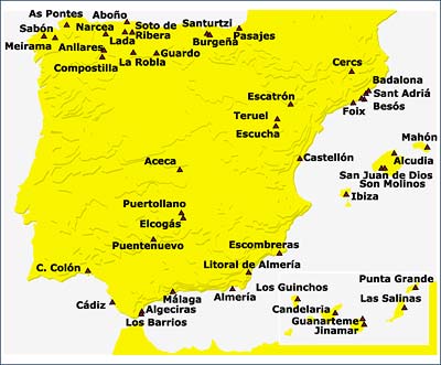 Mapa de centrales térmicas (carbón – fuel) en España: